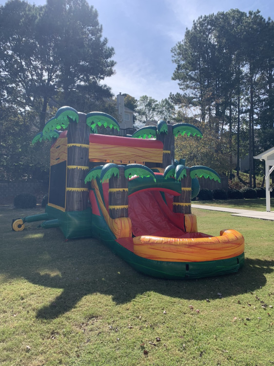 You will never disappoint when bringing dinosaurs to your backyard or event! This dinosaur bounce house has double the fun with an attached wet/dry slide!