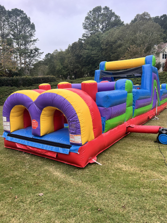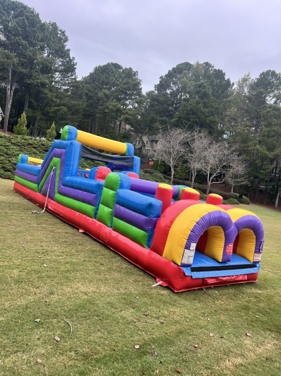 Bounce House Atlanta's 40' Radical Run Obstacle Course brings back the Retro Colors of old and makes them fun again in the 8 Element, Challenging obstacle Course.