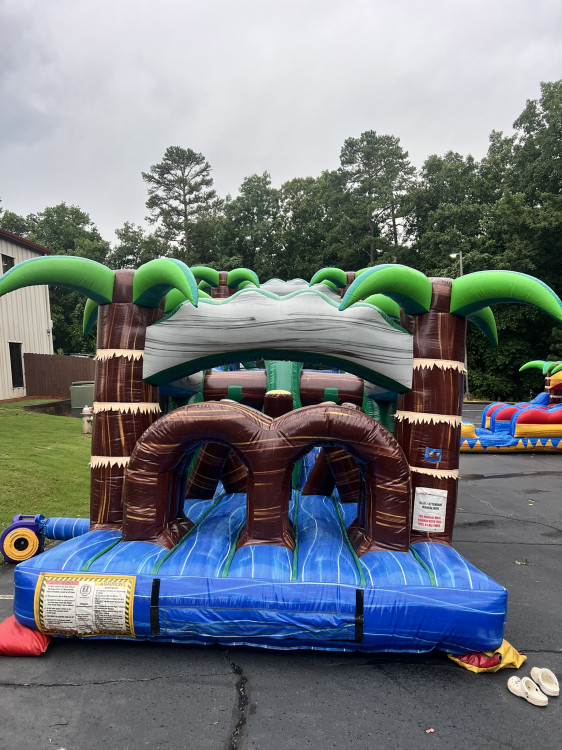 Take your next party or event to the next level with Bounce House Atlanta's 47' Blue Crush Obstacle Course with Dual Lane Slide! This inflatable obstacle course is filled with excitement – from its bright, cheerful colors to its dual lane slides and climbing wall. Plus, it has a built-in pool stopper at the bottom for extra fun and wetness! Get ready for an unforgettable day of fun with Bounce House Atlanta's 47' Blue Crush Obstacle Course with Dual Lane Slide. It's sure to be a hit at any gathering!
