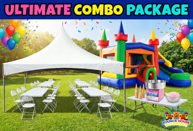 The Ultimate Combo Package is designed for customers who want maximum fun and value in one complete party rental bundle. Combining shade, seating, inflatables, and concessions, this package is perfect for birthday parties, school events, and backyard celebrations throughout North Georgia.