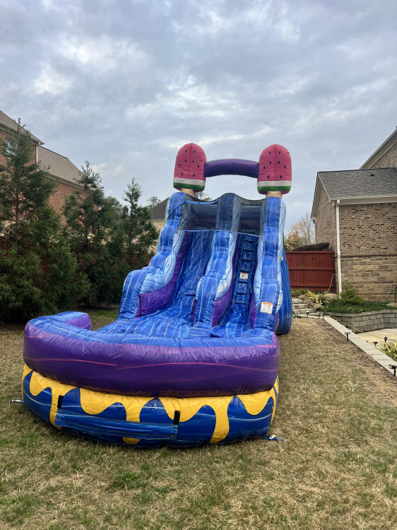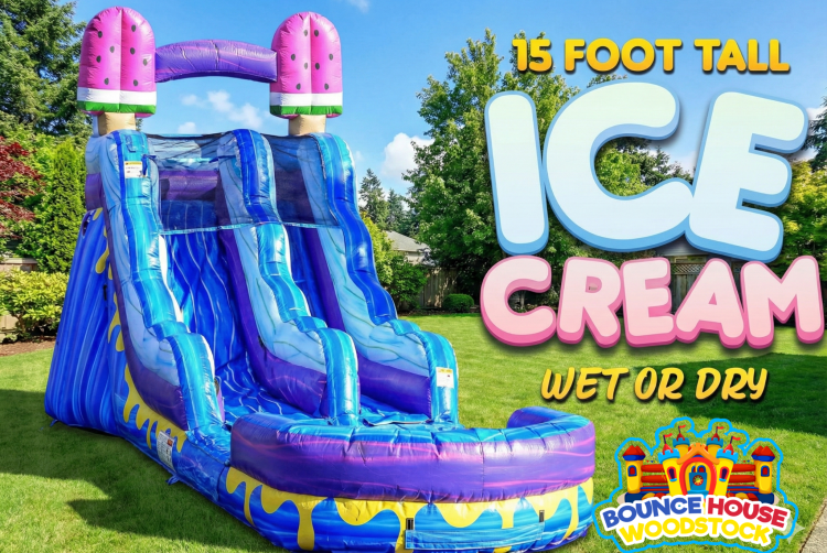 Cool off this summer with Bounce House Atlanta's 15' Ice Cream Pop Water Slide rental! This inflatable water slide is sure to make a splash at your next event. The bright colors, fun ice cream pops, and safe sliding ensure a great time for all! And don't forget the wet/dry slide feature which allows kids to go down the slide again and again without getting wet if that's what they would like!