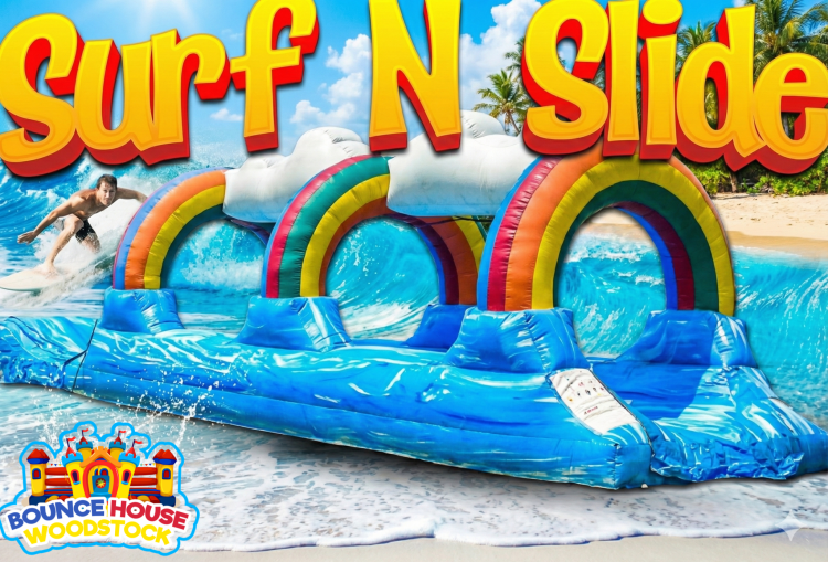 Surf's up with this giant 36' Surf N' Slide! The inflatable slipnslide comes with a pool, perfect for cooling off during those hot summer days. It has realistic surfboard styling, making it an ideal way to cool down and have fun all at once.
