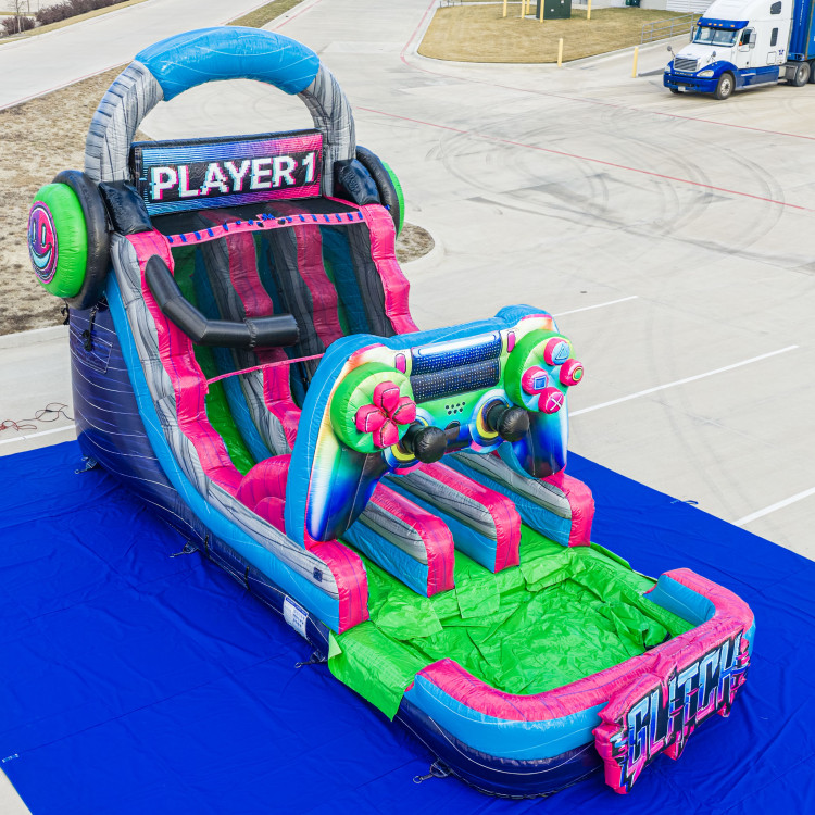 Reserve your 16 Ft Dual Lane Gamer Water Slide today and bring the ultimate gaming-themed fun to your next event.